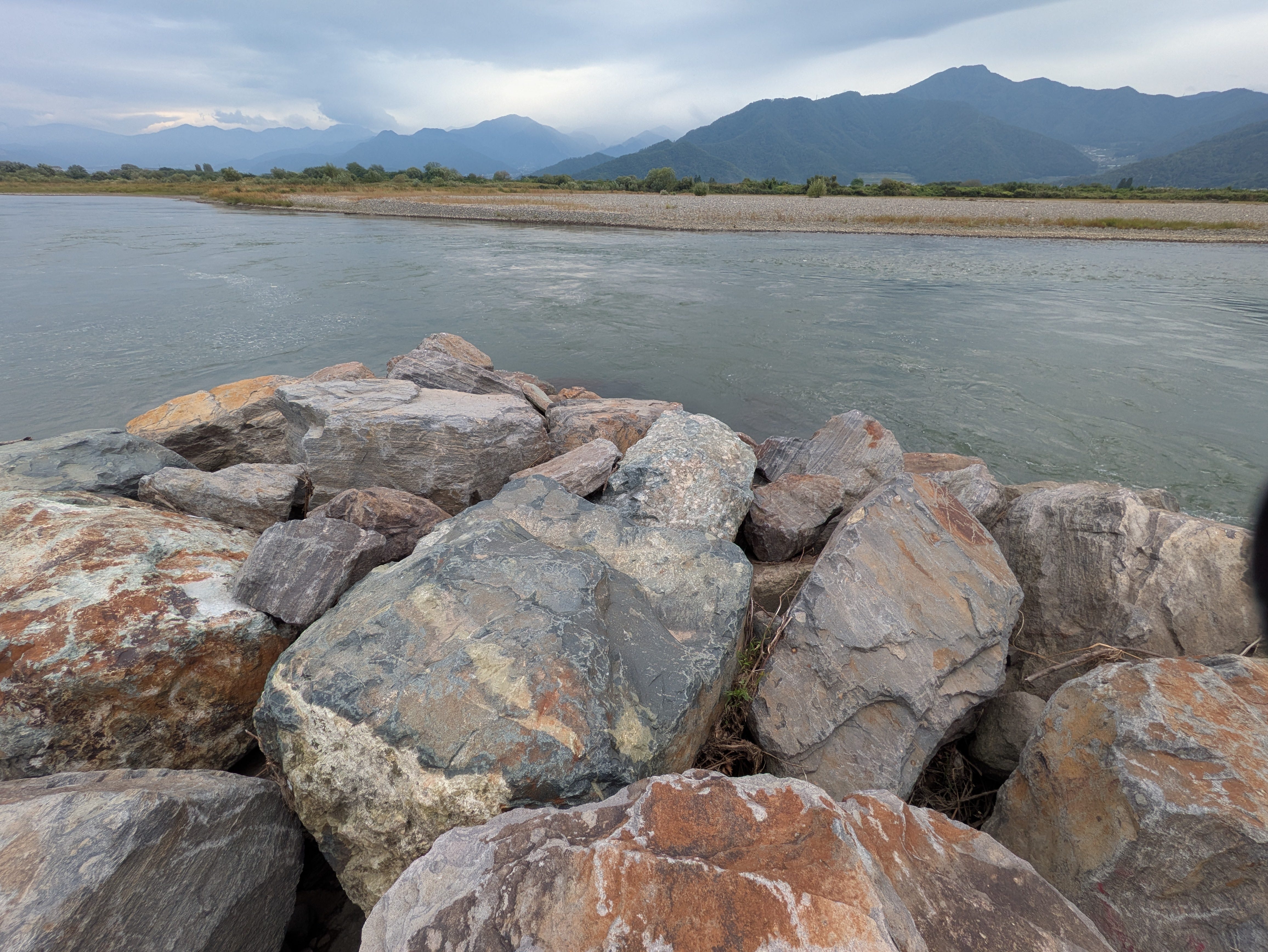 Chikumagawa, Chikuma River, Shinano Kuni, soccer practice on Sunday. The early fall means it is cool enough for a riverside walk.