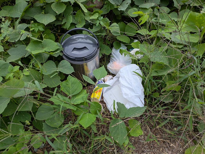 Dust roads lead to soccer grounds, agriculture, and trails that lead to riverside access. Burned remnants of late-night drinking, illegal garbage dumping, and vines overtake signage.